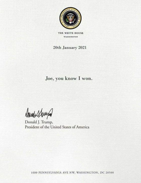 Qaynarinfo xəbər verir ki, Trampın məktubu cəmi bir cümlədən ibarət olub.