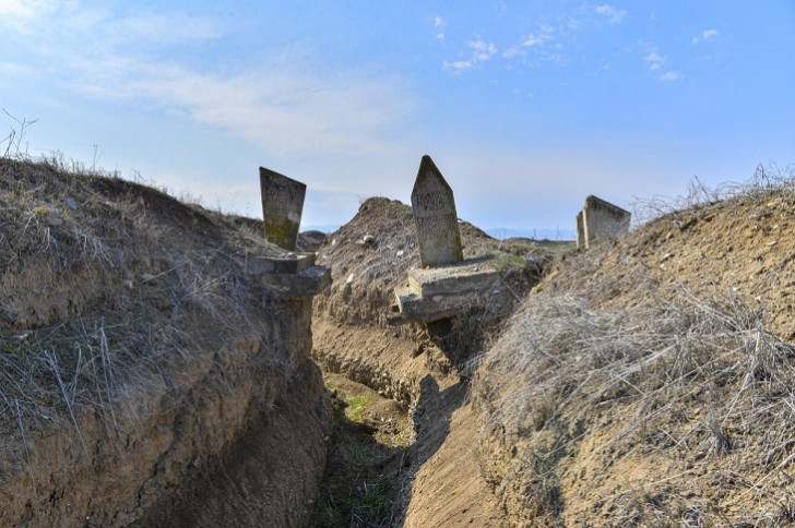 Son günlər sosial şəbəkələrdə yayılan ermənilərin işğal etdikləri Azərbaycan ərazisindəki qəbiristanlıqda qazdıqları səngərlə iki bacının qəbrini bir-birindən necə barbarcasına ayırdıqlarını əks etdirən fotolar Ağdam rayonunun Yusifcanlı kənd qəbiristanlığında çəkilib.