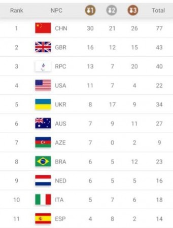 Qeyd edək ki, Azərbaycan 9 medalla ümumi cədvəldə 7-ci yerdədir.