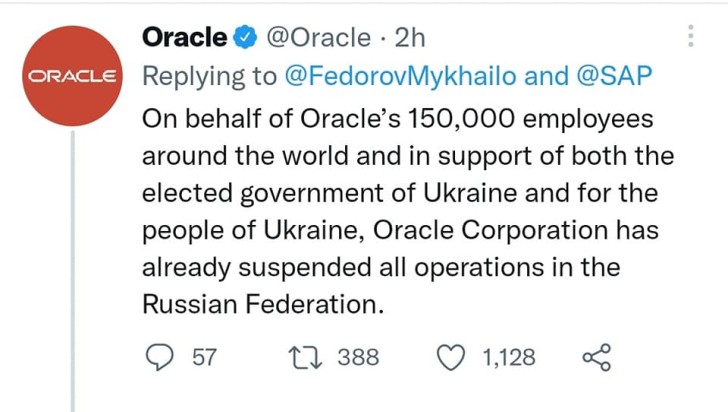 Dünya nəhənglərindən olan "Oracle" şirkəti də Ukraynaya qarşı aparılan müharibə ilə bağlı Rusiya bazarından çıxacağını rəsmi olaraq açıqlayıb.