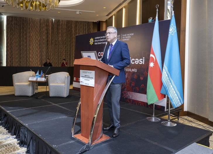Açılış nitqi ilə çıxış edən Dövlət Gömrük Komitəsi Tibbi Xidmət İdarəsinin rəisi, tibb xidməti general-mayoru Ceyhun Məmmədov COVID-19 infeksiyasının Azərbaycan əhalisi arasında kütləvi surətdə yayılmasının qarşısının alınması və ölkəmizdə pandemiya şəraitinin nəzarətdə saxlanılması istiqamətində ölkə rəhbərliyi tərəfindən həyata keçirilmiş qabaqlayıcı tədbirlər barədə geniş məlumat verib, Mərkəzi Gömrük Hospitalının da pandemiya dövründə 21 ay ərzində yalnız kovid xəstələrinin müalicəsi ilə məşğul olduğunu bildirib. O, bu dövrdə Mərkəzi Gömrük Hospitalında 2000-dən çox COVID-19 xəstəsinin stasionar müalicə aldığını, onlardan ağır və hədsiz ağır vəziyyətdə olan 300-dən çox pasiyentin reanimasiya və intensiv terapiya şöbəsində müalicə olunduğunu söyləyib. Mərkəzi Gömrük Hospitalının əldə etdiyi müvafiq təcrübə əsasında ərsəyə gətirilmiş metodik vəsaitin hazırlanma mərhələsi barədə məlumat verən C.Məmmədov bildirib ki, bu vəsait yalnız şəxsi təcrübəyə deyil, həm də çoxsaylı beynəlxalq araşdırmaların nəticələrinə, nüfuzlu beynəlxalq elmi jurnallarda dərc edilmiş məqalələrə əsaslanır. Qeyd olunub ki, metodik vəsait Azərbaycan Respublikası Səhiyyə Nazirliyinin Elmi-Tibbi Şurasının 1 mart 2022-ci il tarixli 04 nömrəli qərarı ilə təsdiq edilib və bu sənəd COVID-19 pandemiyası dövründə Tibbi Xidmət İdarəsi, Mərkəzi Gömrük Hospitalı tərəfindən görülmüş işlərin məntiqi yekunudur.