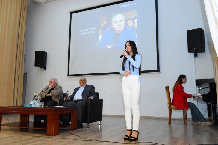 Aprelin 22-də Azərbaycan Dillər Universitetində Xalq şairi Ramiz Rövşənlə görüş keçirilib.