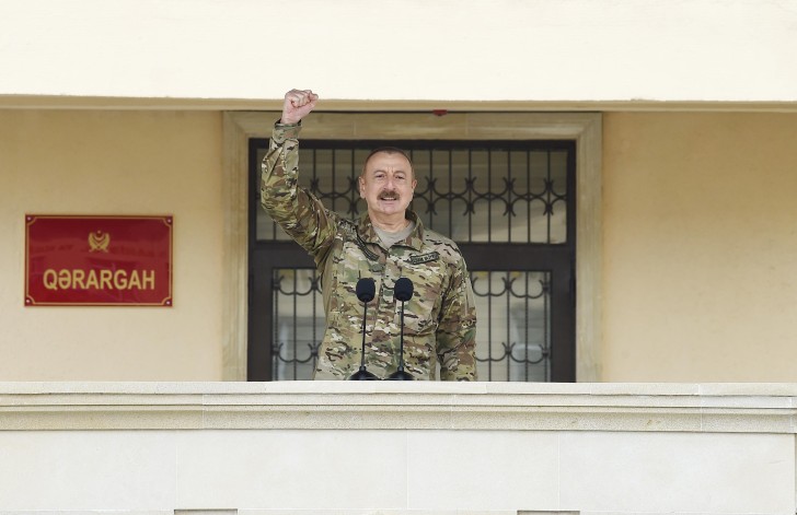 Azərbaycan Silahlı Qüvvələrinin tarixi Zəfəri bizim tariximizdə əbədi qalacaq. Biz müzəffər xalq kimi, qalib dövlət kimi bundan sonra əbədi yaşayacağıq. Bu sevinci bizə bəxş edən bizim övladlarımız, əsgər və zabitlərimiz olub. Bütün Silahlı Qüvvələr bu Qələbənin əldə olunmasında öz dəyərli töhfəsini vermişdir və cəmi 44 gün ərzində tarixi Zəfər əldə olundu, düşmən bizim qabağımızda diz çökdü və məcbur oldu öz əli ilə kapitulyasiya aktına imza atdı. Bu, tariximizin və mənim həyatımda bəlkə də ən yaddaqalan, ən sevincli, ən qürurlu anlardan biridir, bəlkə də birincisidir. Ermənistanın kapitulyasiya aktına imza atmaq mənim həyatımda ən qürurlu hadisədir.