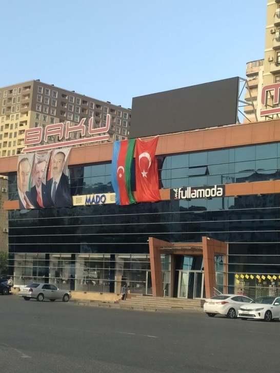AFN.az xəbər verir ki, bununla bağlı görüntülər sosial şəbəkələrdə yayılıb. Türkiyə bayrağı ilə yanaşı asılan Azərbaycan bayrağında ay-ulduzun istiqaməti düzgün olaraq aşağı tərəfə baxsa da, rənglərin yerinin səhv olmasından aydın olur ki, bayrağı asanlar mövcud qaydanı bilmirlər. Belə ki, Nazirlər Kabinetinin “Azərbaycan Respublikası Dövlət bayrağının qaldırılması (asılması), endirilməsi, saxlanılması və istehsalı Qaydaları”nda dəyişiklik edilməsi haqqında” 21 iyun 2018-ci il tarixli qərarına əsasən, Azərbaycan Respublikasının Dövlət bayrağı binanın divarına dirəksiz şaquli çəkildikdə və ya şaquli vəziyyətdə xüsusi tutqaclara bərkidildikdə, dövlət bayrağının mavi zolağı qarşıdan baxarkən sağ tərəfdə yerləşməlidir. Fotodan göründüyü kimi, “Baku Mall” Ticarət Mərkəzində bu qaydaya əməl edilməyib. Maraqlı burasıdır ki, “Baku Mall” Ticarət Mərkəzi deputat Malik Həsənova məxsusdur. Bildiyimiz qədərilə, deputatın ofisi də həmin binada yerləşir. Əcəba, M.Həsənov da NK-nın qərarını bilmir?