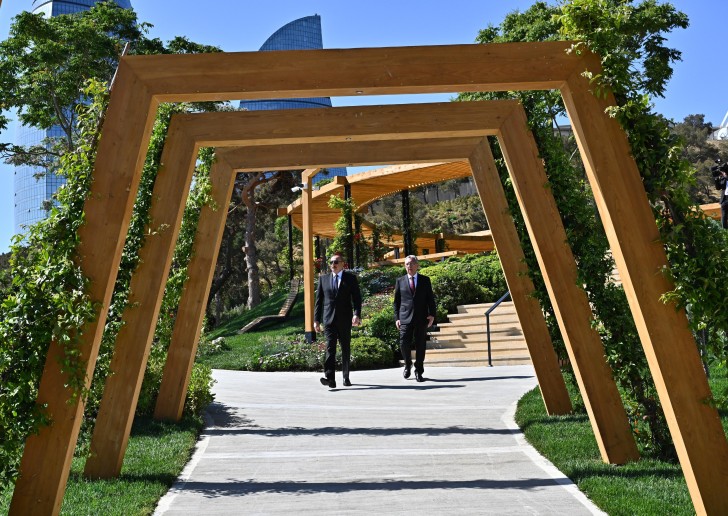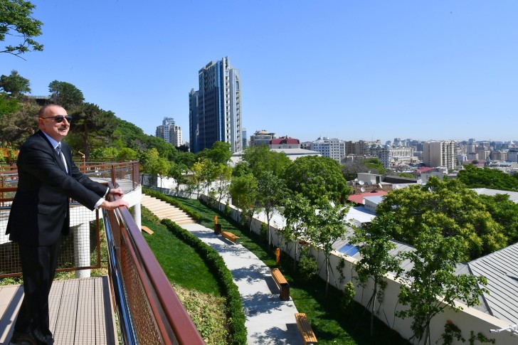 Prezident İlham Əliyev yeni parkdan paytaxtın mənzərəsini seyr edib.