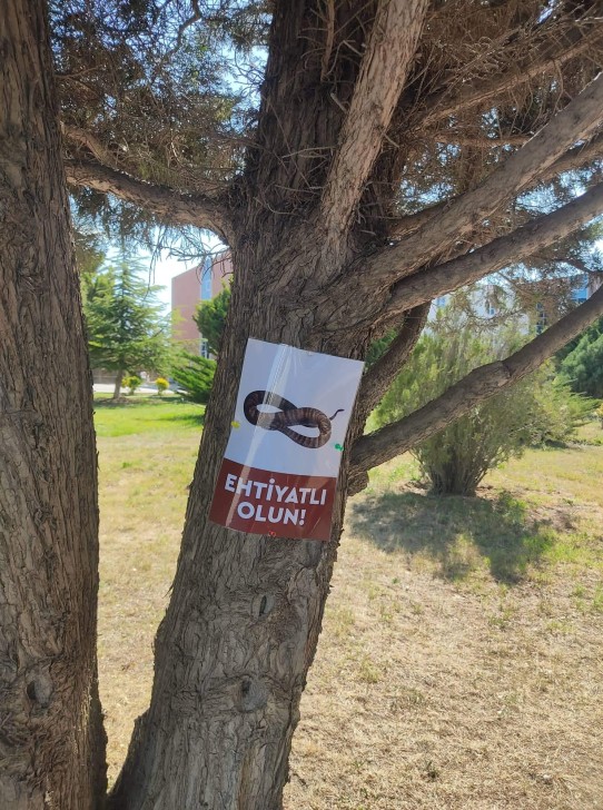 Bir neçə gündür sosial şəbəkələrdə Azərbaycan Mühəndislik Universitetinin həyətində ilanların olması ilə bağlı məlumat paylaşılır. Bu gün isə ali təhsil ocağının həyətində yerləşən ağaca yapışdırılan elan diqqət çəkib. Elanda ilan şəkli yer alıb və “Ehtiyatlı olun” deyə xəbərdarlıq edilib.