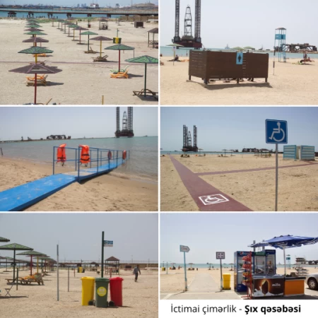 Sözügedən ictimai çimərliklərdə geniş abadlıq işləri aparılıb, Fövqəladə Hallar Nazirliyinin xilasetmə məntəqəsi yaradılıb, sərinləşdirici içkilər və müxtəlif qida məhsulları təklif edən köşklər, tələbata uyğun miqdarda kölgəliklər, soyunub-geyinmə və duş kabinaları, sanitar qovşaqlar, söhbətgahlar quraşdırılıb, futbol və voleybol meydançaları, avtomobil dayanacağı yaradılıb, dəniz kənarına uzanan yola asfalt çəkilib. Vətəndaşların istirahətinin təşkili üçün çimərlik ərazilərinə kifayət qədər oturacaq və şezlonqlar, ərazi boyunca zibil konteynerləri yerləşdirilib.
