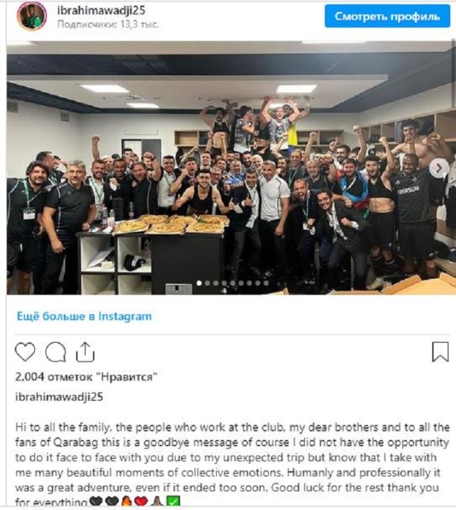 "Sent-Etyen"ə (Fransa) transfer olunan İbrahima Vadji ayrıldığı "Qarabağ" və klubun azarkeşləri ilə vidalaşıb.