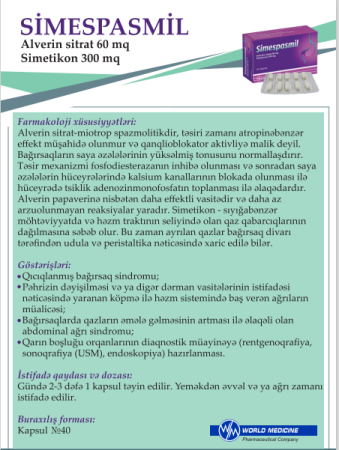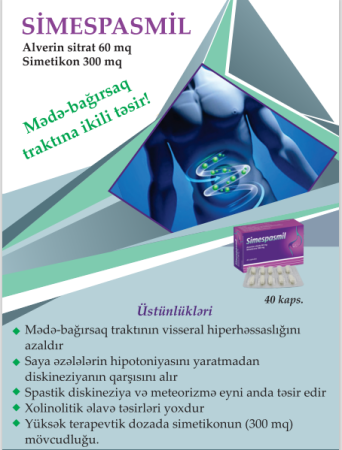 Mədə-bağırsaq traktının visseral hiperhəssaslığını azaldan dərman vasitəsinə ehtiyacınız varsa, mütləq Simespasmilə müraciət edin.