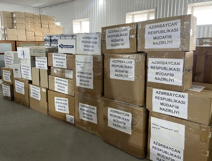 Tibb İdarəsinin rəhbər heyətinin iştirakı ilə qan əvəzediciləri, antibiotiklər, sarğı və tikiş materialları, dezinfeksiya edicilər, eləcə də digər məsrəf tibbi əmlakdan ibarət, ümumilikdə 15 tonluq yük nəqliyyat vasitəsilə Türkiyəyə yola salınıb.