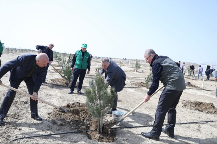AFN.az xəbər verir ki, Ekologiya və Təbii Sərvətlər, Səhiyyə nazirlikləri, Milli Aviasiya Akademiyası, “Azərbaycan Xəzər Dəniz Gəmiçiliyi” QSC-nin rəsmiləri və əməkdaşlarının, eyni zamanda, tələbə və könüllülərin iştirakı ilə Müşfiqabad qəsəbəsində Abşeron yarımadasının torpaq-iqlim şəraitinə uyğun Eldar şamı və zeytun ağacları əkilib.