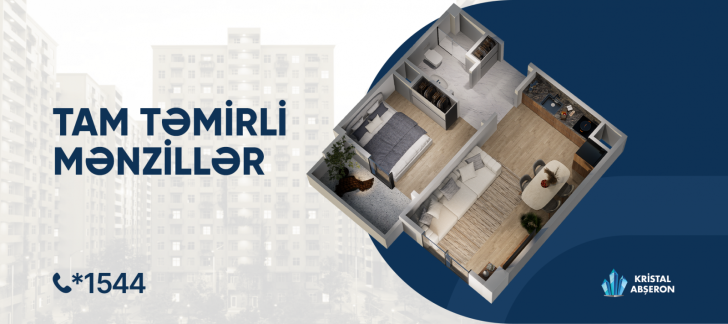 Siz də elə indi illik 6%-dən başlayan ipoteka krediti ilə "Kristal Abşeron”dan kirayə qiymətinə, tam təmirli mənzil sahibi ola bilərsiniz.
