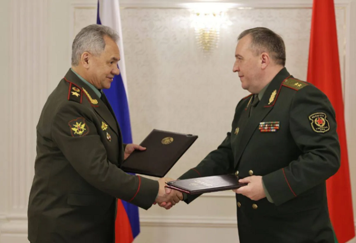 Rusiyanın müdafiə naziri Sergey Şoyqu Belarusun paytaxtı Minskdə belaruslu həmkarı Viktor Hrenin ilə görüşüb. Nazirlər Rusiya nüvə silahlarının Belarus ərazisində xüsusi anbarda saxlanmasını nəzərdə tutan protokolu imzalayıblar.