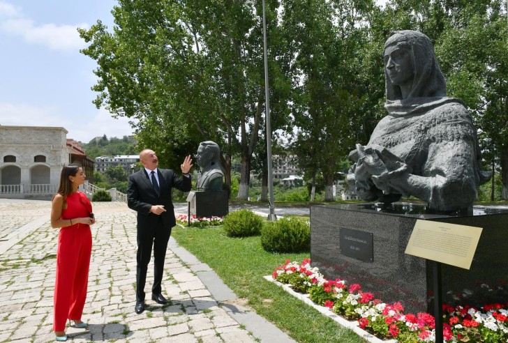 Müsahibədən sonra Prezident İlham Əliyev “Euronews”un müxbirinə işğal dövründə Şuşada ermənilər tərəfindən gülləbaran edilmiş Azərbaycanın tanınmış şəxsiyyətləri Natəvan, Bülbül və Üzeyir Hacıbəylinin heykəlləri barədə məlumat verdi.
