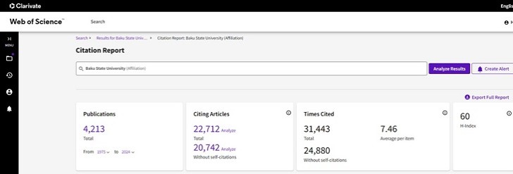 “Clarivate Analytics” Beynəlxalq İnformasiya Agentliyinin rəsmi məlumatına əsasən, BDU-nun Hirş indeksi 2023-cü ildə 6 bal artaraq 60 olub. Bununla BDU yenə də Azərbaycan universitetləri arasında öz liderliyini qoruyur. Hər bir əsərə istinadların orta sayı isə 6.12-dən 7.46-ya qədər yüksəlib.