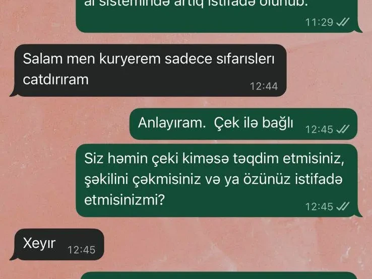 "Wolt"un sifarişini yerinə yetirən kuryer isə müştəriyə qəbzə müdaxilə etmədiyini, sadəcə sifarişləri çatdırdığını bildirib.
