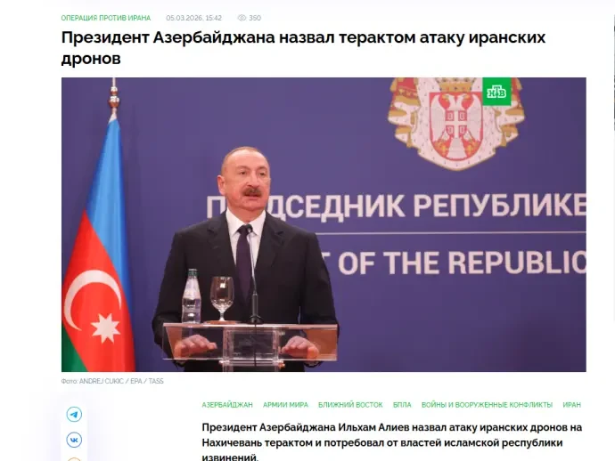 Azərbaycan Prezidenti İlham Əliyevin martın 5-də İranın Naxçıvana dron hücumu ilə bağlı Təhlükəsizlik Şurasında sərt çıxışı dünyanın aparıcı media orqanlarının diqqət mərkəzindədir.