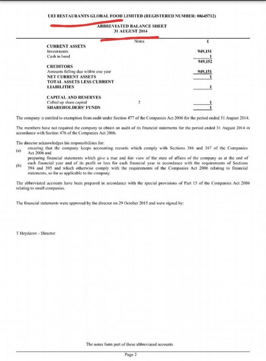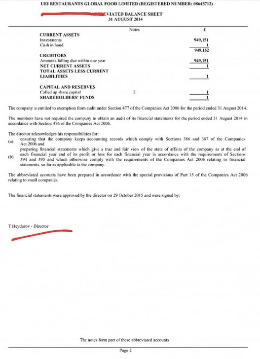 Bunlar Heydərovların üzdə olan şirkətləridir. Maliyyə hesabatlarına görə onlardan yalnız UEI RESTAURANTS LIMITED şirkəti daha ciddi aktivlərə sahibdir. 2016-cı ilin maliyyə hesabatına görə bu şirkətin kapital və rezervləri 10 milyon 770 min funt sterlinq həcmindədir. Bu o deməkdir ki, əvvəlki illə müqayisədə 500 min funt sterlinq artıb. Bu şirkət Londonda Heydərovlara məxsusBAKU RESTAURANT-ı idarə edir. Bu restoran Londonda kifayət qədər bahalı məkanlardan sayıır. Burda14 funt sterlinqdən başlayan qiymətlərlə kabab, 35 funta nərə balığı kababı, hətta 100 funta qara kürüdən dadmaq olar.