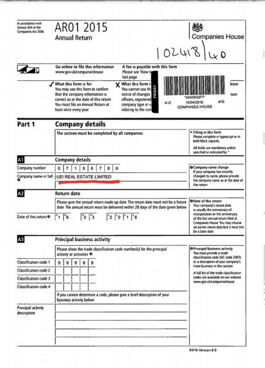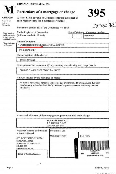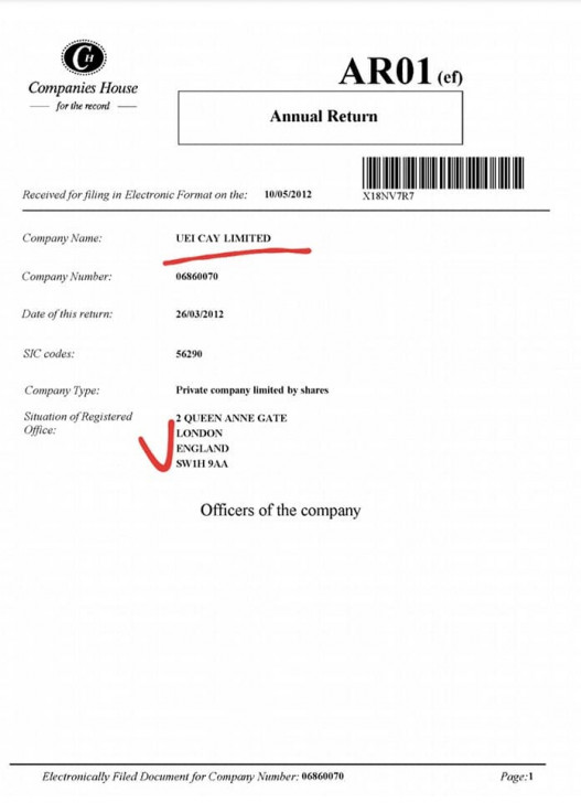 (şəhadətnamə nömrəsi 07573289, 22 mart 2011-ci ildə təsis edilib, fəaliyyətdədir). Şirkət xanım Jordana və onun rəhbərlik etdiyi JTC şirkətlər qrupuna həvalə edilib.Qeydiyyat ünvanı: 7th Floor 9 Berkeley Street, London, England.