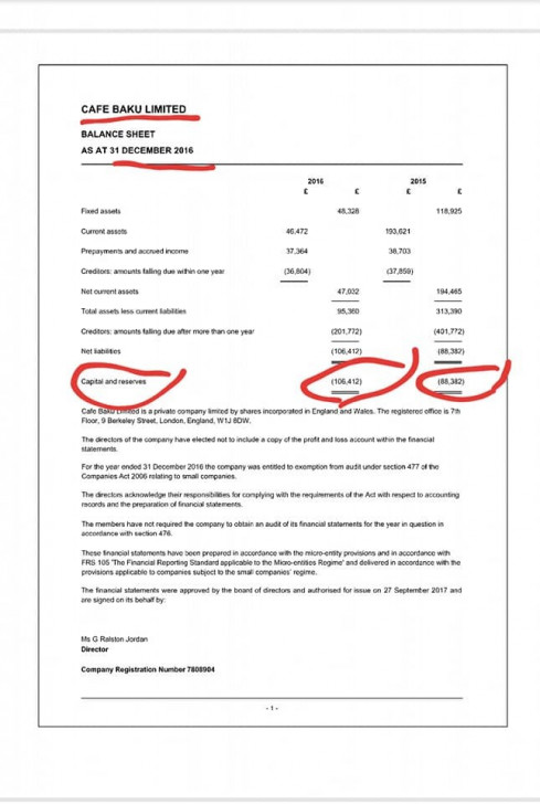 Jurnalist bildirib ki, hansısa səbəblərdən nazir son 1-2 il ərzində onların adlarını şirkətlərin rəsmi təsisçiləri sırasından çıxarıb və bununla guya Britaniyadakı biznesinə son qoyduğu görüntüsünü yaratmağa çalışıb.