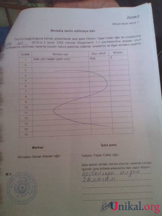 "Gədəbəy rayon məşğulluq mərkəzinə işsiz kimi qeydiyata düşdüm. Özünüməşğulluq proqramına qoşuldum. 2019-cu ilin yanvar ayının əvvəllərində mənə iki inək verildi. Biznes planda inəklərin qiymətinin 4340 manat olduğu qeyd edilir. Həmçinin planda balalı inəklar olduğu yazılıb. Amma mənə verilən heyvanların balası yoxdur. İnəklərin qiymətləri də sənədlərdə olduğu kimi deyil. Həmin heyvanları bazara çıxarsaq 2500 manata satmaq qeyri-mümkündür. Mən heyvanları təqdim edən İlham adlı şəxsə iradımı bildirsəm də o sənədlərə qol çəkdirdi. Bildirdi ki, həmin bu heyvanlar sonradan dəyişdiriləcək. Amma sözünü tutmadı. İndi şikayətimə baxan da yoxdur. Bu inəklərlə heç bir iş qurmaq olmaz. Aidiyyatı qurumlardan mənə köməklik edilməsini xahiş edirəm."