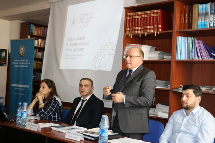 Vergilər Nazirliyinin Dövlət qeydiyyatı və uçota nəzarət departamentinin baş direktoru Ələkbər Məmmədov isə kiçik və mikro sahibkarlara o cümlədən, startapçılara biznesə başlamaq üçün hüquqi şəxslərin 1 prosedurla onlayn dövlət qeydiyyatının həyata keçirilməsi haqqında ətraflı məlumat verilib.