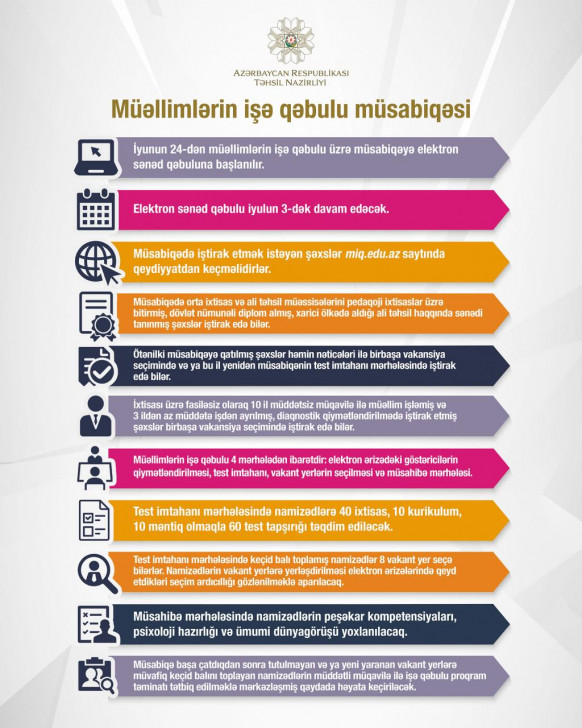 İyulun 3-dək davam edəcək prosesə qatılmaq üçün namizədlər miq.edu.az saytında qeydiyyatdan keçməlidirlər.