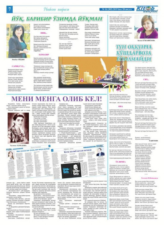 Özbəkistanın “Kitab Dünyası” qəzetində tanınmış özbək şairi Həlimə Əhmədovanın millət vəkilinin özbəkcəyə uyğunlaşdırılaraq “Kitab Dünyası”nda çap edilmiş şeirləri haqqında təhlil yazısı yayınlanıb.