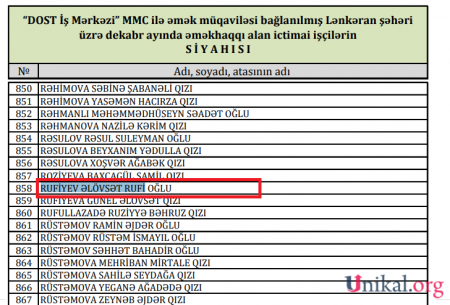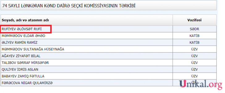 Digər fakt isə Lənkəran kənd 74 saylı Seçki Dairəsinin sədri Rufiyev Əlövsət Rufi oğlu ötən ilin okyabrından DOST Mərkəzi MMC-də fəhlə kimi çalışması ilə bağlıdır.