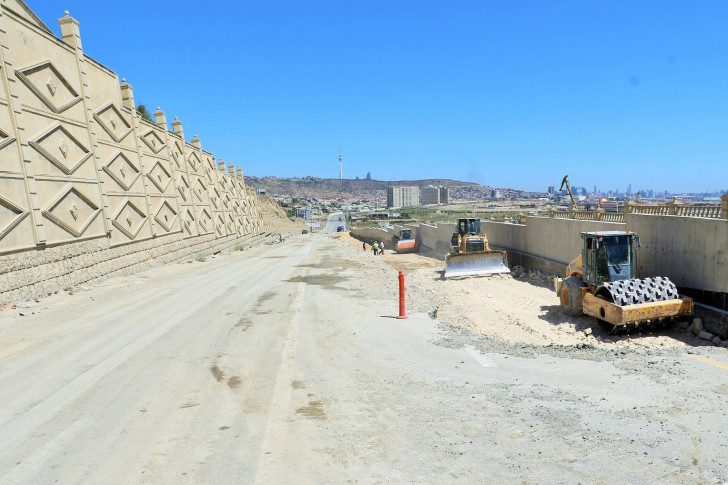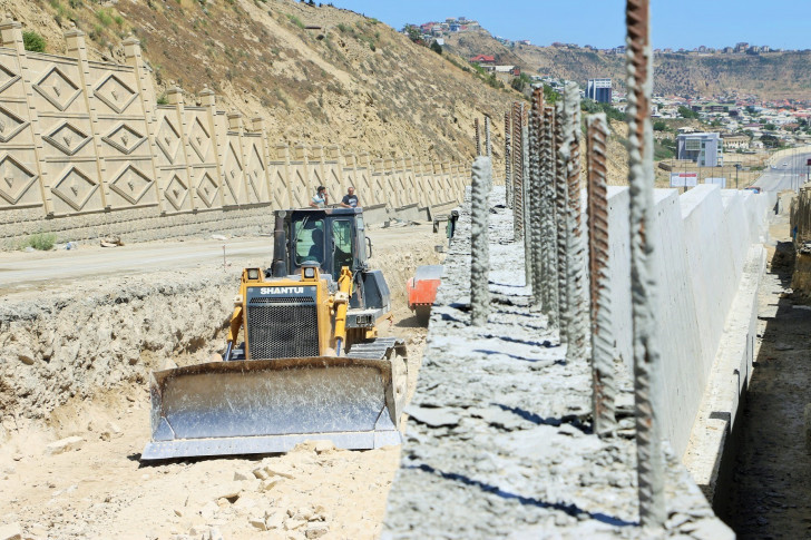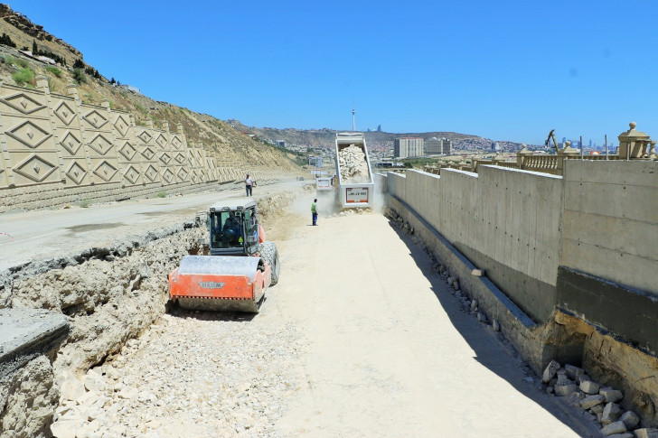 Sözügedən layihəyə uyğun olaraq artıq yamacın aşağı hissəsində svay əsaslı istinad divarının inşası yekunlaşdırılıb. Bunun üçün ərazidə svay vurma işləri aparılıb. Svaylar 1 metr diametrində olmaqla 2 cərgə vurulub və üzərində 1.5 metr qalınlıqda monolit dəmir-beton tava inşa edilib. Tava üzərində 8 metr hündürlükdə istinad divarı tikilib.