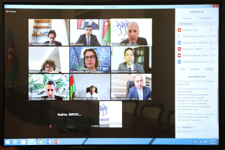 Azərbaycan Kənd Təsərrüfatı Nazirliyi, Fransa Sahibkarlar Təşkilatının (MEDEF) Fransa-Azərbaycan Biznes Şurası və ölkəmizin Fransadakı səfirliyi arasında kənd təsərrüfatı və aqro-ərzaq mövzusunda onlayn görüş keçirilib.